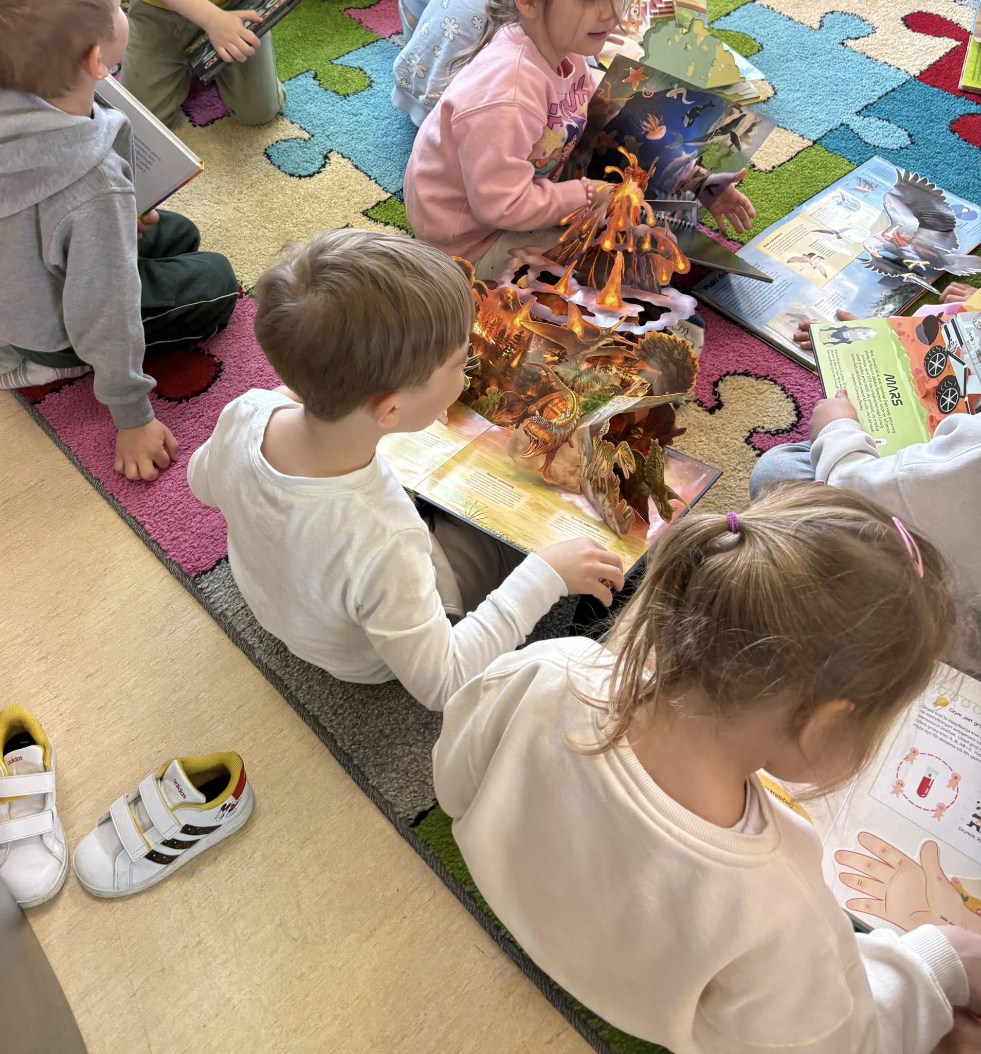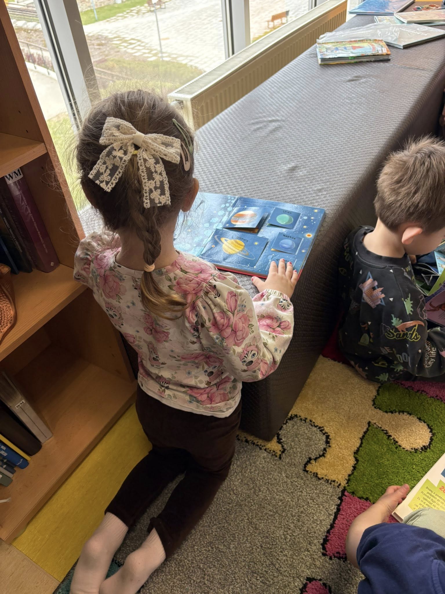 Razem z książkami wyruszyliśmy w kosmiczną podróż, a także poznawaliśmy fascynujący świat zwierząt mieszkających w lesie Dzieci świetnie poradziły sobie z zagadkami i z ogromnym zainteresowaniem przeglądały książeczki – zarówno te klasyczne, jak i wyjątkowe książki 3D oraz z rozszerzoną rzeczywistością