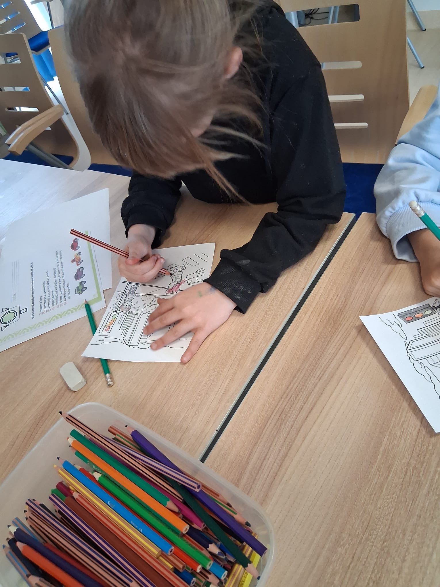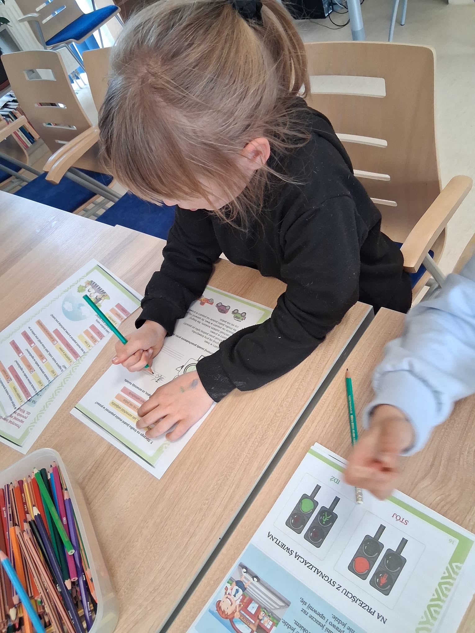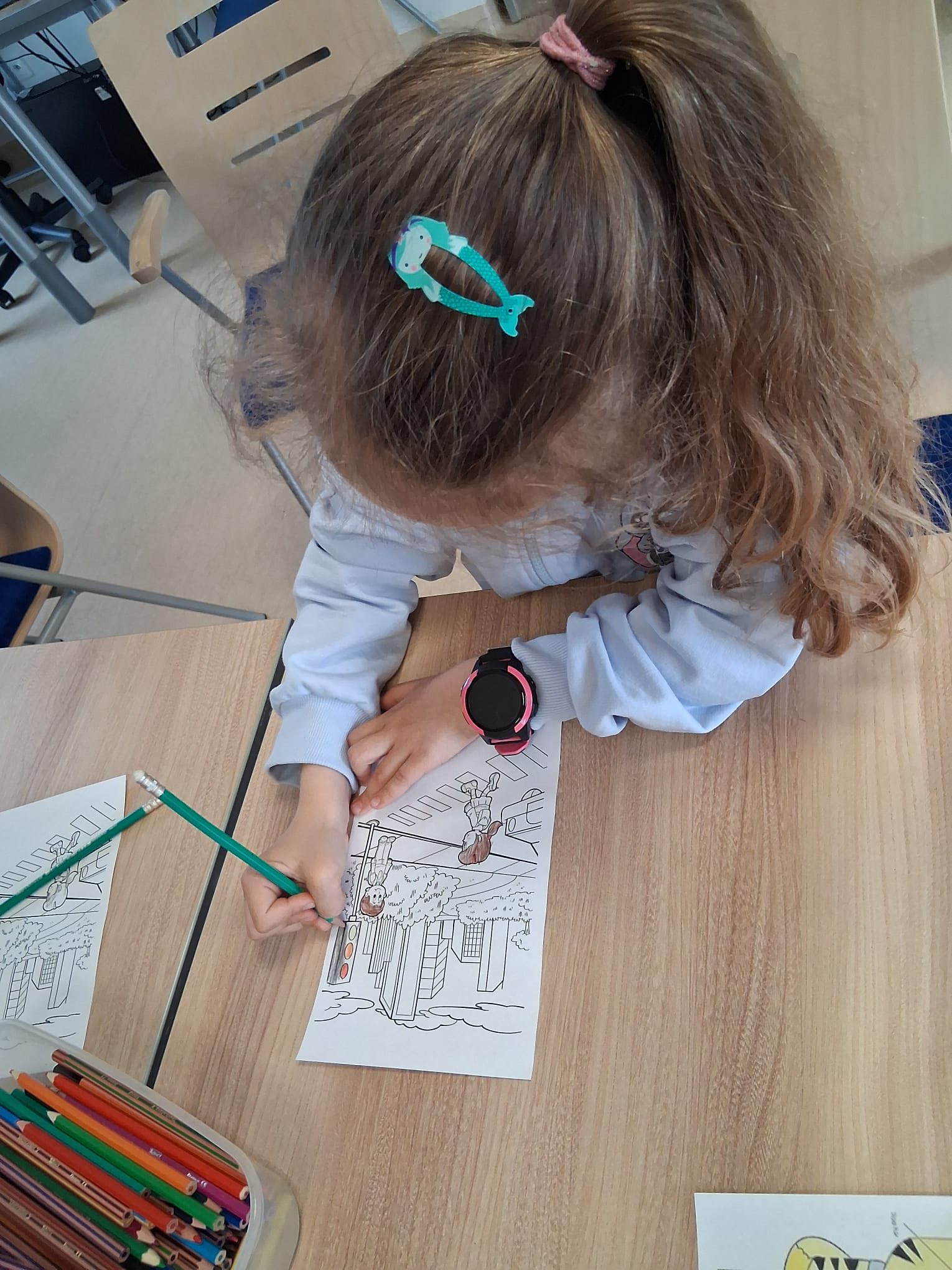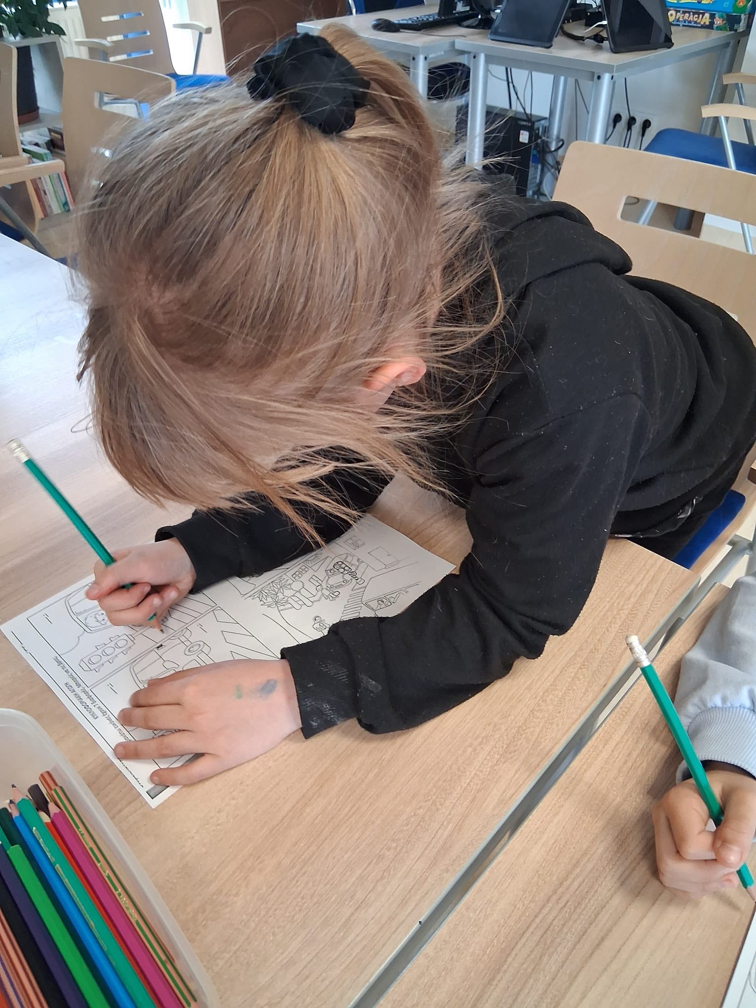 Nie zabrakło także ćwiczeń ręki – były kolorowanki, które pozwoliły utrwalić zdobytą wiedzę i rozwijać sprawność manualną.